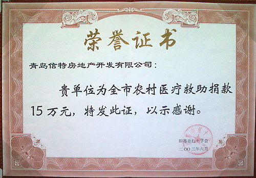 我公司荣获2003年“农村医疗救助特别贡献单位”荣誉称号