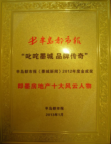 2012年度荣获“金成就奖-即墨房地产十大风云人物”荣誉称号