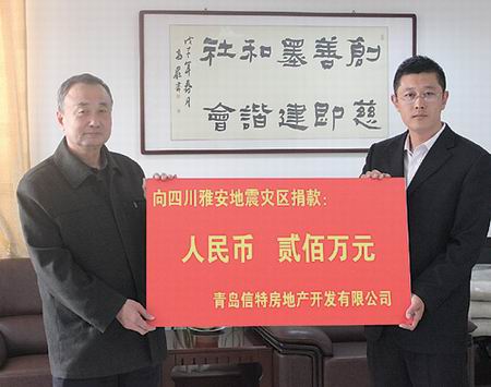 2013年向雅安地震灾区捐赠毛巾15000条,价值40万元,捐赠现金200万元,帮助灾区人民早日重建家园;